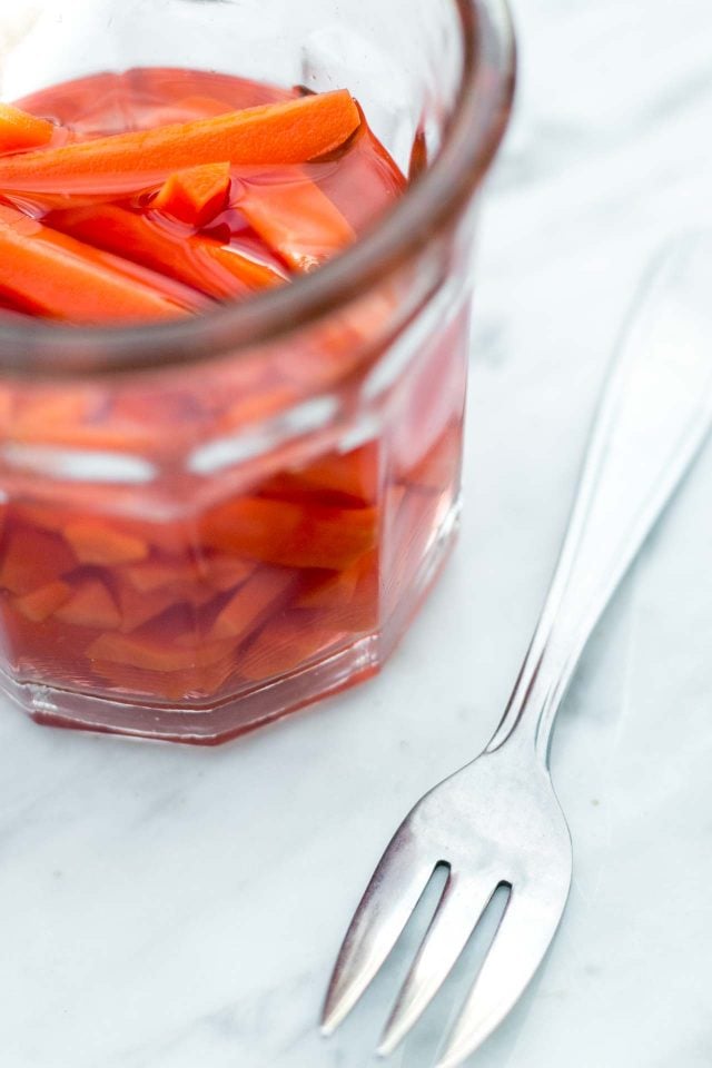 - Remove from heat and add the carrot sticks. Cool until room temperature, then put into jars and chill.