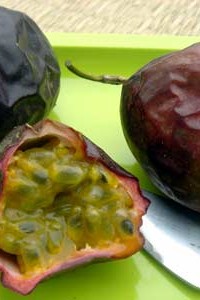 The most common persimmon you’re likely to find is the Hachiya, a slightly elongated fruit that tapers to a point. They’re incredibly tannic and astringent when not ripe and need to be squishy-soft and feel like a full water-balloon before using, or you’ll be sorry. Once ripe, the sweet jelly-like pulp can be spooned out and pureed through a blender, food processor, or food mill, although some folks like to eat it as is or frozen. The pulp freezes beautifully, and in fact, I’ll often freeze some for late-winter use. To ripen a Hachiya persimmon, simply let it sit on your countertop until it’s so soft, it’s like a water balloon about to burst. You can hasten the process by putting persimmons in a well-sealed container; adding an apple, which give off a lot of ethyline gas, which will speed things up.