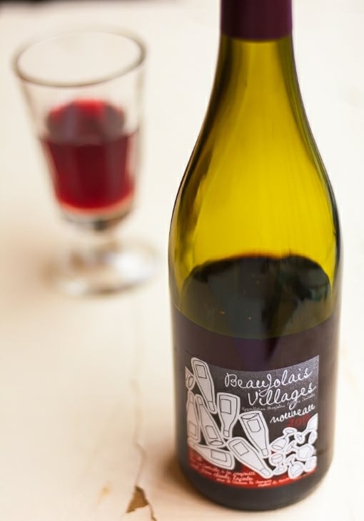 One French fรชte that Thanksgiving neatly coincides with is the release of Beaujolais Nouveau, which happens annually on the third Thursday of November. The wine is very young and while there are signs promoting its release in windows of wine bars and shops in Paris, few of my high-fallutin’ wine friends will drink it. But there are some of us that will drink anything, so I usually have a glass or two, just to get into the spirit of things.