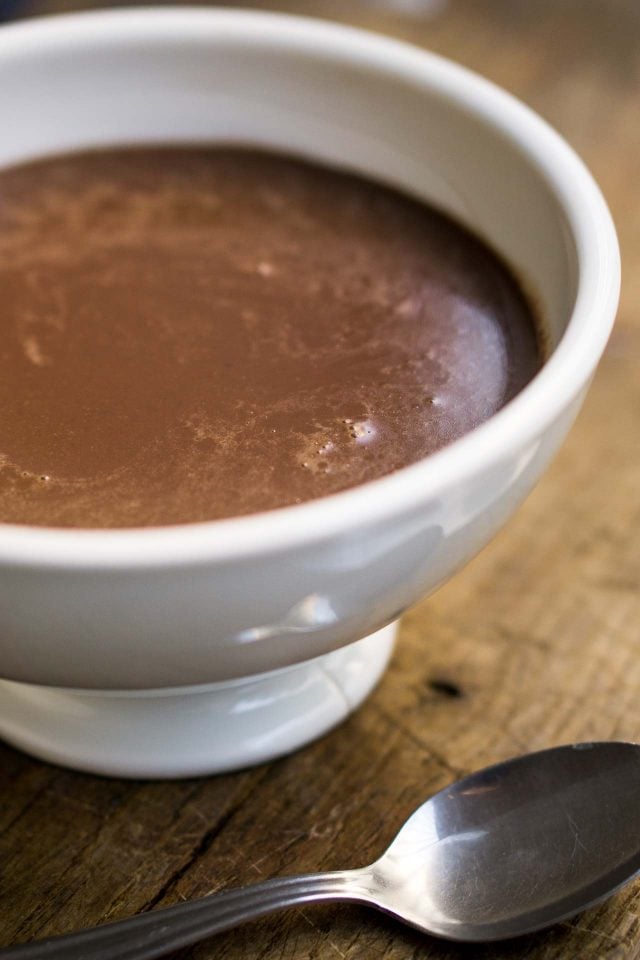Contrary to popular belief, Parisian hot chocolate is usually made with milk rather than cream, and get its luxurious richness from top-quality chocolate. This cup of hot chocolateย is deeply flavorful, but not over-the-top rich…so there’s no need to feel guilty indulging in a warm cup whenever, and wherever, you feel the need.