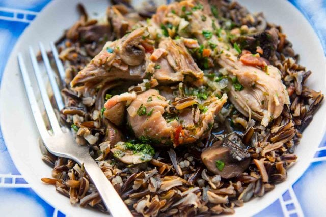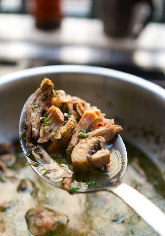 - When the sauce is reduced to your liking, scrape the mushrooms and any liquid into the pot with the turkey. Taste, and season with additional salt and pepper, and serve.